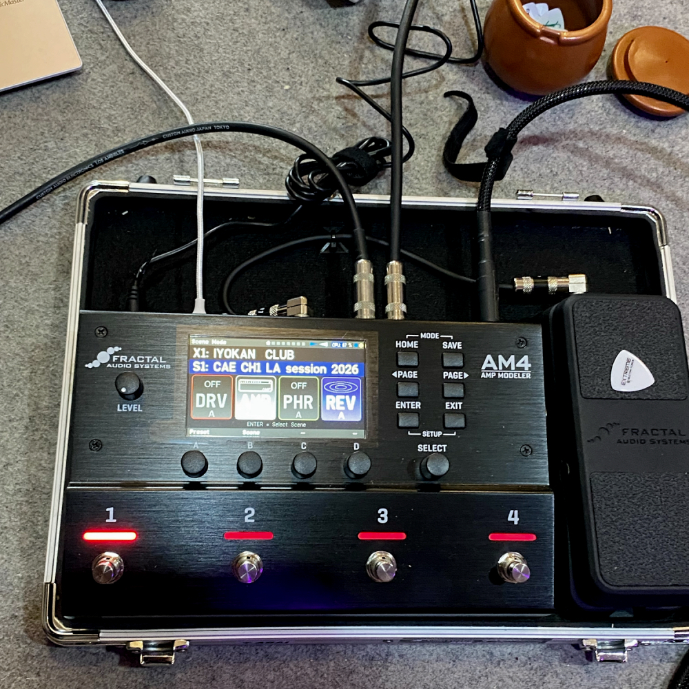これしか使わないメイン機器と言うことではなく、あくまでいくつかあるシステムの中のひとつです。自由度が高いAXE-FXと比べて、シンプルなAM4は機能もどんな音を作るかも変わってくるため、AM4のシステムは「持ち運びとスペースを重視した用途」になっていくと思います。
