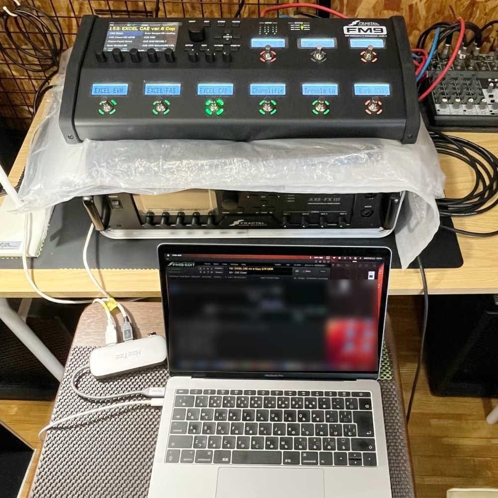 こちらのシステムでは普段は3TB本体のみで使用し、実機(3+SE)を使う場合はペダルを併用するなど旧来のアンプシステムとして、FRACTAL 3TBの空間系エフェクトと、FullResIRを使用。